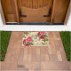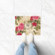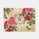 Rosas rosados y rojos del vintage en un fondo del damasco de la crema y del oro acentuado por una inicial con monograma que usted puede personalizar, hace un felpudo elegante. Diseñado por el ©Tim renombrado Coffey del artista del mundo.