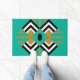 Este doormat presenta un diseño inspirado en el tejido Art Decó de formas diamantíferas en negro, blanco y bronceado en un campo de verde azulado.