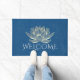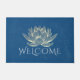 Yoga Studio Meditation Instructor / Life Coach / Healer / Reiki Master / Massage Therapy Welcome Doormat Templates - Modern Elegant Faux Gold Lotus en PANTONE 19-4052 TCX Classic Blue Color Grunge Background.