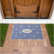 Capturar el aire mediterráneo con este diseño de baldosas azules y blancas inspirado en el suelo de cerámica de las casas y patios vintage de Europa. Su propio nombre familiar, número de casa o mensaje de bienvenida aparecerá en el área central de texto.