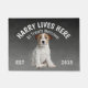 Jack Russell Terrier Personalized Dog lover bienvenido doormat. Esta alfombra de bienvenida se puede personalizar con el nombre de su perro, el lema también se puede cambiar o se puede usar una imagen de su propio perro (asegúrese de que es transparente). El texto dice: Harry vive aquí... Todos los tratamientos son bienvenidos Editar el diseño para cambiar el tipo de letra, los colores y el color de fondo. Cuando reemplace la imagen de su perro, utilice una imagen transparente. Hace un regalo maravilloso para un fiesta que hace las delicias del hogar, vacaciones, amantes del perro y casi cualquier ocasión.