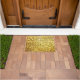Una alfombra de puerta amarilla de antiguos jeroglíficos grabados en piedra.