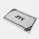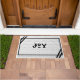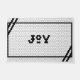 Repita esta temporada la alegría sonora con este doormat de diseño de tejas hexagonales en blanco y negro. Esta estera blanca dice "Alegría" en negro con un borde negro moderno.