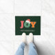 Colorido, festivo, tipográfico "JOY" sombrero de santa, verde, alfombra de puerta de vacaciones. Personalizar con su firma familiar.