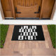 Doormat negro con un elegante diseño clásico de patrones de figuras de ajedrez en blanco y negro.