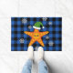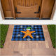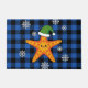 Felpudo Kawaii Navidad Starfish en patrón de búfalo azul