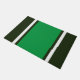 Este moderno diseño deportivo presenta una banda central vertical kelly-verde realzada con rayas blancas sobre un fondo verde profundo del bosque.