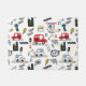 ,A playful, cartoon-style city pattern featuring buses, cars, helicopters, traffic lights, buildings, and fun doodle text like “Beep Beep,” “Wuz Up?” and “Go,” in bright red, yellow, blue, and black tones.