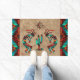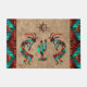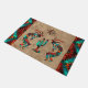 ¡Este es un Doormat del Suroeste de Kokopelli "Uno de los bonitos"! Cuenta con dos Kokopelli que tocan la flauta y bailan alrededor de un cactus bajo el sol en un fondo tan profundo... ¡Rodeado por un borde suroeste en turquesa, Naranja y negro! Este es un diseño de arte original del artista Kerry Miller.