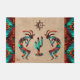 ¡Este es un Doormat del Suroeste de Kokopelli "Uno de los bonitos"! Cuenta con dos Kokopelli que tocan la flauta y bailan alrededor de un cactus bajo el sol en un fondo tan profundo... ¡Rodeado por un borde suroeste en turquesa, Naranja y negro! Este es un diseño de arte original del artista Kerry Miller.