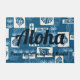 Color azul índigo. El mensaje de Aloha da la bienvenida a sus visitantes a su propio paraíso tropical. En las aguas cristalinas de la bahía de Kua, en la isla grande de Hawaii, la vida submarina es abundante. Nuestra vintage aloha se inspiró en la impresión textil, muestra conchas, coral y algas marinas como se ve a través de los ojos de una máscara de buceo. Este diseño se presenta en varios colores y está disponible en una colección de productos de decoración casera. Puede personalizar el mensaje.