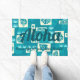 Verde azulado. El mensaje de Aloha da la bienvenida a sus visitantes a su propio paraíso tropical. En las aguas cristalinas de la bahía de Kua, en la isla grande de Hawaii, la vida submarina es abundante. Nuestra vintage aloha se inspiró en la impresión textil, muestra conchas, coral y algas marinas como se ve a través de los ojos de una máscara de buceo. Este diseño se presenta en varios colores y está disponible en una colección de productos de decoración casera. Puede personalizar el mensaje.