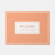 naranja peach doormat de bienvenida alegre con un delicado patrón de flores blancas y nombre familiar