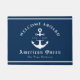 El diseño náutico de la alfombra náutica "Welcome Aboard" presenta una estética costera elegante de color azul marino y blanco, con un ancla de un barco. Personalízalo con el nombre, la ubicación, la ciudad, el estado y la fecha establecida de tu barco para un toque único. Esta alfombra personalizado es un regalo fantástico para los propietarios de los barcos, perfecto para acoger a los huéspedes a bordo.
