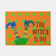 Caprichoso la bruja está en el doormat para Halloween.