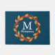 Celebra la cosecha de otoño con este doormat de corona con hojas de naranja, bellotas marrones, ramas y bayas rojas! Prepárese su porche delantero para el esplendor y el aire fresco del otoño. Personalizar su monograma familiar y nombre en escritura blanca.