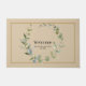 Esta alfombra de bienvenida cuenta con una corona de agua verde, un mensaje de bienvenida clásico y el nombre de su familia.