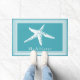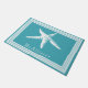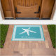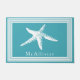 Silueta blanca elegante de las estrellas de mar en un fondo azul del mar con nombre personalizado del monograma de la familia en blanco. El borde tiene líneas blancas diseño del marco.