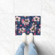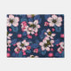Flores de manzana dibujadas a mano y abejas en un fondo azul oscuro