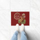 Vaquera occidental del vintage que se sienta en una bala de heno que pone en sus botas. "Es hora de poner a su chica grande patea" dentro de burbuja de la prueba del lazo. Estera de puerta