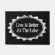 La vida es mejor en el lago de portero blanco y negro para casa. Diseño de sellos ovales de época. Tapón exterior de puerta con divertida cita inspiradora/motivacional. Haga su propio bonito personalizado de puerta interior / exterior con color de fondo personalizado y dicho. Añade tu propio mensaje de bienvenida, nombre de familia, monograma, apellido o texto humorístico. Idea de regalo para nueva casa / limpieza, fiesta de retiro, tienda, cabaña, oficina inmobiliaria, restaurante, etc. La moderna y gruesa tipografía de aspecto descolorido. Plantilla personalizable. Crea tu propia estera/alfombra de entrada única para la puerta delantera/entrada o el vestíbulo. Decoración y decoración de personalizable para su acogedora casa del lago. Regalo divertido para hombres y mujeres jubilados, pareja feliz casada/recién casados, novia y novio, luna de miel o marido y mujer.