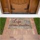 Decoración y diseño a la moda en una elegante alfombra de puertas. Hermosa luz contemporánea, patrón de textura de corteza de color medio y marrón oscuro con la frase de texto "Life Is Full of Choices, Remove Your Shoes or Scrub The Floor". Diseño elegante para el diseñador de interiores artísticos y divertido amante de las citas motivacionales o inspiradoras. Original y moderno producto de decoración de casa para el hombre o la mujer que busca decorar su entrada a casa en el espacio exterior, o porche delantero de su casa de playa, casa de campo, cabaña de troncos, casa de vacaciones en el lago o río.