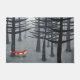 Un zorro rojo salvaje se alza entre los árboles en un bosque oscuro. Un cuadro paisajístico para los amantes de los animales, la naturaleza y la fauna.
