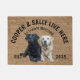 Labrador Recuperever Personalized Dog lover bienvenido doormat. Esta alfombra de bienvenida se puede personalizar con el nombre de su perro, el lema también se puede cambiar o se puede usar una imagen de su propio perro (asegúrese de que es transparente). El texto dice: Cooper y Sally viven acá... Todos los tratamientos son bienvenidos Editar el diseño para cambiar el tipo de letra, los colores y el color de fondo. Cuando reemplace la imagen de su perro, utilice una imagen transparente. Hace un regalo maravilloso para un fiesta que hace las delicias del hogar, vacaciones, amantes del perro y casi cualquier ocasión.