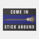 Decoración divertida de lacrosse para jugadores, entrenadores y aficionados al equipo, con un lax stick en un fondo azul.