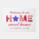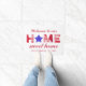 El doormat casero dulce casero rojo, blanco, y azul con el O en el hogar substituido por una estrella azul llenó de las estrellas blancas. Añada su apellido también y el año que establecieron a su familia.