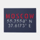 Las coordenadas de longitud y latitud de Moscú, Rusia en fuentes con problemas le dan un aspecto urbano moderno. Fondo azul oscuro con texto rojo y blanco
