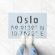 Coordenadas de mapas de latitud y longitud para Oslo, Noruega, con fuente gris urbana moderna sobre fondo azul claro