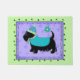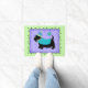 Muestra el amor de tu perro con esta alfombra de puerta de bienvenida para tu casa o trabajo. Esta alfombra presenta un caprichoso territorio escocés negro que lleva puesto un agua turquesa o un verde azulado abrigo azul dulce decorado con lavanda y acentos verde limón. El perro escocés está usando un tobogán de los mismos colores para una franja turquesa y lavanda con perros en la manguera. El fondo es lavanda y púrpura con acentos de copo de nieve púrpura tonal. Un borde verde cal con huellas de pata negra rodea el arte del perro. Un borde de línea serpentina negra está dentro del borde verde limón. Una flor verde azulada turquesa está por encima del perro. Este perro lindo, cariñoso y de moda es arte original de Phyllis Dobbs y derritirá el corazón de un amante de los perros. ¡Coordine con productos y personalizares para que sean los suyos!