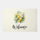 A welcome doormat with a lovely illustration of a bouquet of lemons surrounded by white blossoms leaves and sprigs.