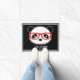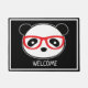 Casa Panda. Decoración De La Casa De La Puerta Del Oso Panda. Cute Panda Tapón de la puerta delantera. León el oso panda con lentes rojos sobre un fondo negro y negro que usted puede personalizar. La decoración es muy agradable. Texto Personalizar, color, estilo de su lindo, todo el mundo ama a León. Panda Bear Mat se adapta a la decoración de tu casa.