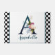 Hermosos y lujosos florales incluyen hojas de oro, rosa morado y adornos de flores silvestres azules en letras grandes / iniciales A con un borde de tablero de ajedrez en blanco y negro. Personalizar con nombre o apellido