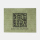 Letra decorativa encantadora B estilo caligrafía monograma inicial tipografía primera letra en color negro sobre recubrimiento de libro verde de salvia con hojas de Ginkgo blanco biloba.