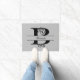En esta estera distintiva de puerta, su nombre está en guión en el centro de una letra B dividida. El nombre y la letra están en negro, y se muestran en un fondo medio a gris claro. Puede cambiar el color de fondo, si lo desea, eligiendo Editar diseño. ¡Elegancia para tu entrada!