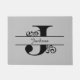 En esta estera distintiva de puerta, su nombre está en guión en el centro de una letra dividida y floreciente J. El nombre y la letra están en negro, y se muestran en un fondo medio a gris claro. Puede cambiar el color de fondo, si lo desea, eligiendo Editar diseño. También puede cambiar el tipo de letra del nombre. ¡Elegancia para tu entrada!