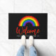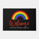 Un hermoso diseño de felpudo rojo de bienvenida con los colores del arcoiris personalizados del orgullo gay LGBT. Muestra tu amor con este hermoso felpudo gay y lo personalizar con tu nombre.