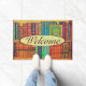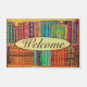 Una estantería llena de libros clásicos encuadernados en cuero transformados con la adición de textura de bordado. Una creación fotográfica que encantará al profesor, bibliotecario o amante de los libros. ¡Esperando tu personalización! Este doormat se puede usar tal como está, con el texto "Bienvenida", o puede modificar el texto y eliminar el fondo oval.