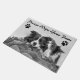 Esta alfombrilla totalmente personalizable que presenta a Jazmine el Border Collie acostado en un tronco de árbol recordará a sus invitados que limpien sus patas cada vez que visiten. Cambie el texto, la imagen y/o las huellas de las patas fácilmente según sea necesario.