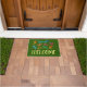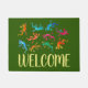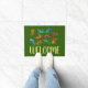 Felpudo con el ilustracion australiano original del arte de los lagartos lindos coloridos de los geckos del artista Sacha Grossel que ofrece estos reptiles lindos en un fondo natural simple del verde del eco. Colorido y vibrante.
