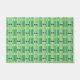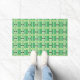 Este doormat tiene un diseño moderno de mediados de siglo de líneas verticales verdes con rectángulos arriba, repetidos a lo largo del diseño.