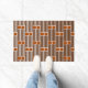 Este doormat tiene un diseño geométrico de cinco líneas con dos cajas encima repetidas sobre el diseño.