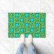 Doormat en una llave griega o laberinto Art Deco en verde jade claro y oscuro, acentuado con turquesa / pavo real