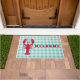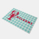 ¡Una estera de bienvenida divertida que combina con la decoración costera y veraniega! El diseño presenta una silueta de bogavante rojo sobre fondo azul gingham