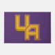 El logo de las iniciales de la Universidad de Albany presenta un diseño audaz y dinámico de "UA", representado en el púrpura distintivo de la universidad y delineado con una sorprendente frontera dorada. Las letras angulares, de estilo bloque, le dan al logo un aspecto fuerte y autoritario, perfecto para representar el orgullo y la identidad de la escuela. La estructura simétrica y geométrica de las letras transmite una estética moderna y profesional.