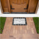 Este moderno portero negro y gris recibirá a los huéspedes en sus casas abiertas. Puede cargar fácilmente su logotipo inmobiliario y añadir su nombre comercial e información de contacto. Un accesorio de marketing funcional y profesional.