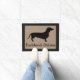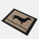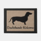 Los Dachshunds acogen con satisfacción el doormat con un fondo impreso falsa arpillera, bordes negros, y una silueta negra del perro del weenie del dachshund.